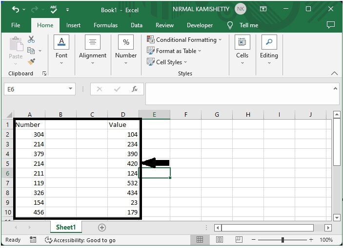 讓我們考慮任何Excel表格,其中表格中的資料類似於下圖所示的資料。