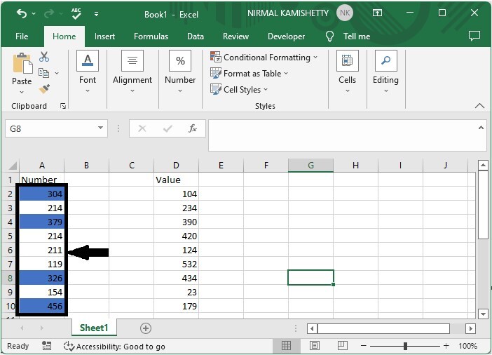然後選擇要應用格式的單元格範圍。您可能已經觀察到,應用於新值的格式與舊格式相同。因此,我們需要更改引用以使其準確。