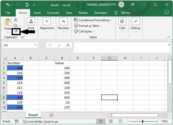 現在要複製條件格式,請選擇應用格式的單元格範圍,然後單擊格式刷。