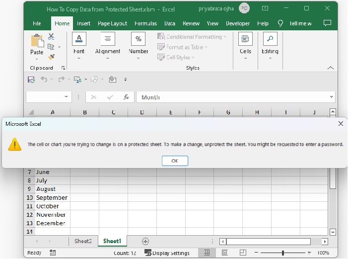 我們可以對工作表施加一些限制的 Excel 工作表被稱為“受保護工作表”。在 Excel 中,您可能有時需要將受保護資料複製到另一個工作表或同一工作表中。如果我們嘗試直接複製資料,則 Excel 將不允許我們複製資料。但是,我們可以使用本教程中提供的技巧來從受保護工作表中複製資料。