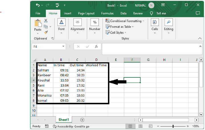 在這裡,我們首先使用公式獲得一個結果,然後使用自動填充柄,最後格式化單元格以完成任務。因此,讓我們來看一個簡單的過程,瞭解如何在 Excel 中計算工作時間。