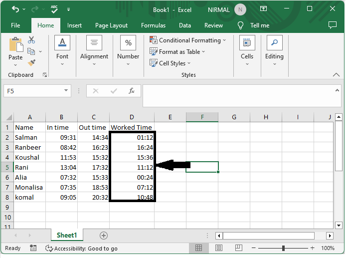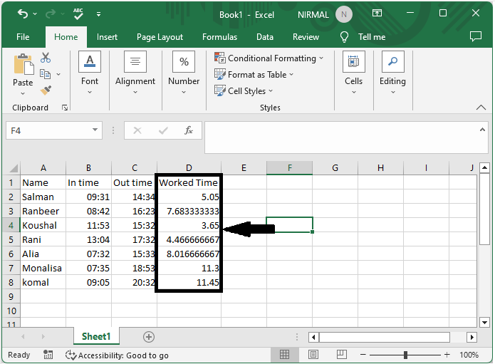 您可以看到這些值將以時間格式顯示,但我們可以透過格式化單元格將其轉換為數字格式。