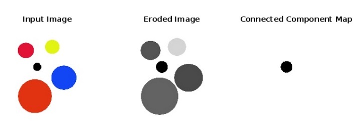 最後,我們使用“disp”函式顯示圓圈的數量、原始影像、腐蝕後的影像和連通分量圖。