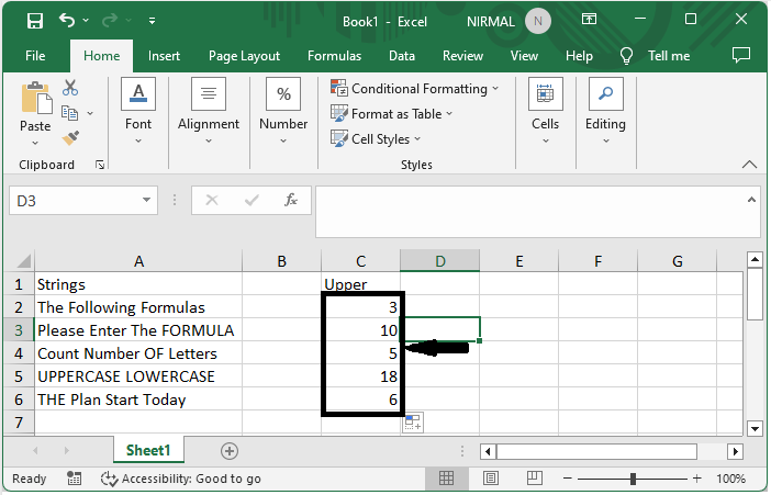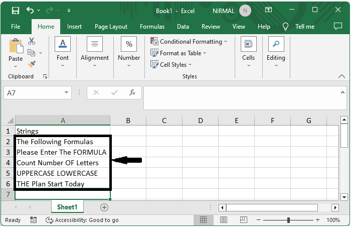 在這裡,我們可以使用公式計算大寫和小寫字母的數量。因此,讓我們看看一個簡單的過程來學習如何在 Excel 中計算單元格中大寫或小寫字母的數量。