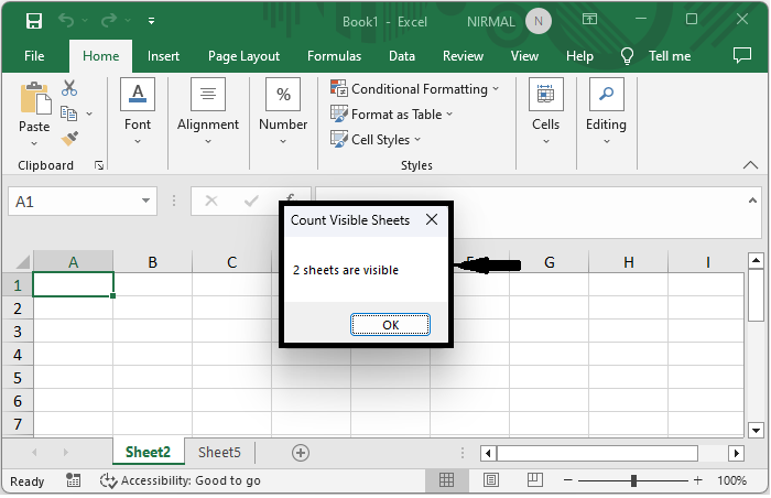 MsgBox I & " sheets are visible", , "Count Visible Sheets"