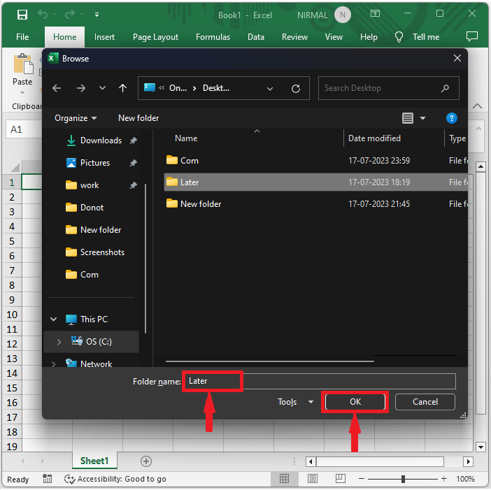 然後單擊F5執行模組,選擇包含PDF檔案的資料夾,然後單擊“確定”。