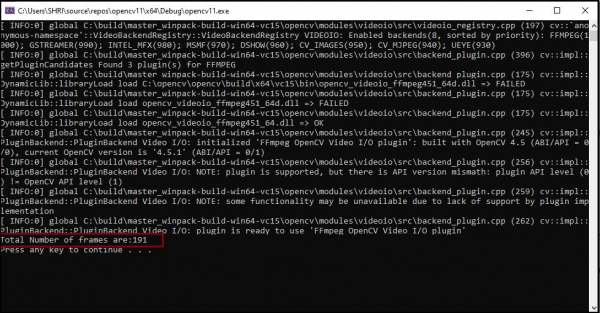 以下程式統計總幀數並將其顯示在控制檯視窗中。