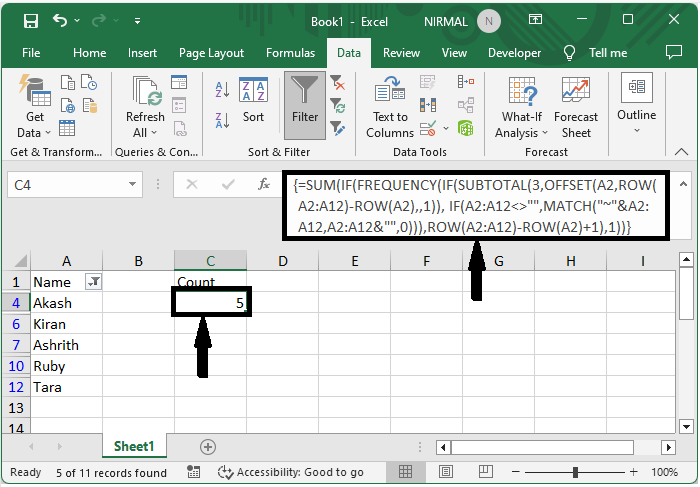 在本教程中,我們使用了一個簡單的示例來演示如何在 Excel 中計算篩選列中的唯一值,以突出顯示特定資料集。