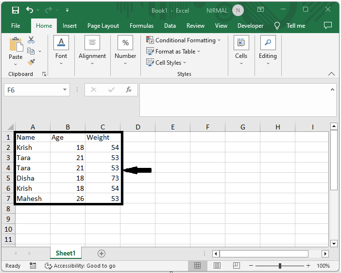 考慮一個 Excel 表格,其中表格中的資料類似於下圖。