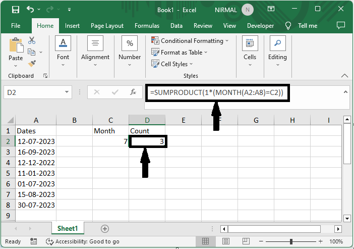 在這裡,我們可以直接使用公式來完成任務。讓我們來看一個簡單的過程,瞭解如何在Excel中按日期、月份、年份和日期範圍進行計數。