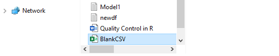 我們能夠使用單行程式碼和 R 中能夠執行此操作的 cat 函式建立空白 csv 檔案。如果我們想要空檔案,將向該函式內部傳遞 NULL 值,且必須使用檔名。例如,如果我們想要建立一個名為 BlankCSV 的空檔案,則使用以下程式碼可以建立