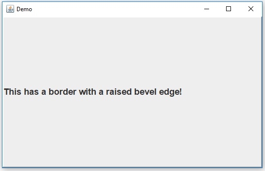 label.setBorder(BorderFactory.createRaisedBevelBorder());以下示例將建立帶有凸斜角的邊框 −