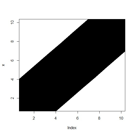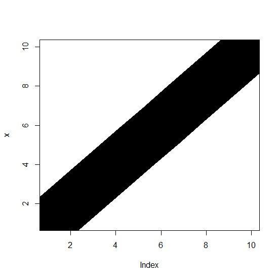 預設情況下,繪圖視窗中的繪圖區域是固定的,我們可以建立一個寬度擴充套件的線形圖,以便圖表覆蓋從左下角到右上角的繪圖區域。這可以透過使用 lwd 引數藉助於非常大的線形圖寬度來實現。