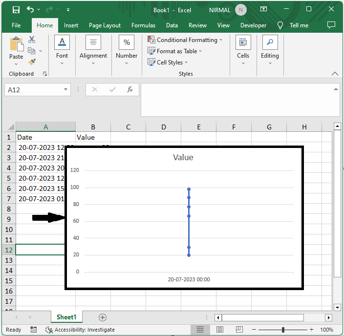 這裡我們將格式化軸以完成任務。因此,讓我們看看一個簡單的過程來學習如何在 Excel 中建立 X 軸上帶有日期和時間的圖表。