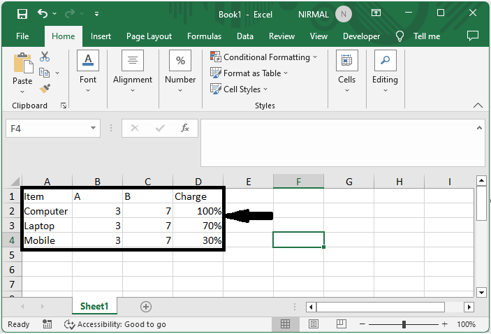 考慮一個Excel表格,其中表格中的資料類似於下面的影像。