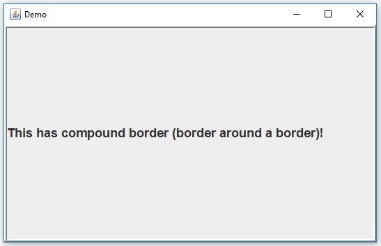 label = new JLabel("This has compound border (border around a border)!");現在,設定複合邊框 −