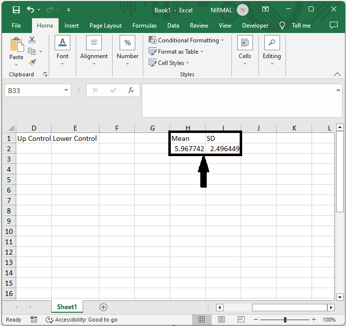 首先,在兩個空單元格中輸入公式 =AVERAGE(B2:B32) 和 =STDEV.S(B2:B32),然後單擊回車鍵。