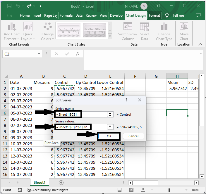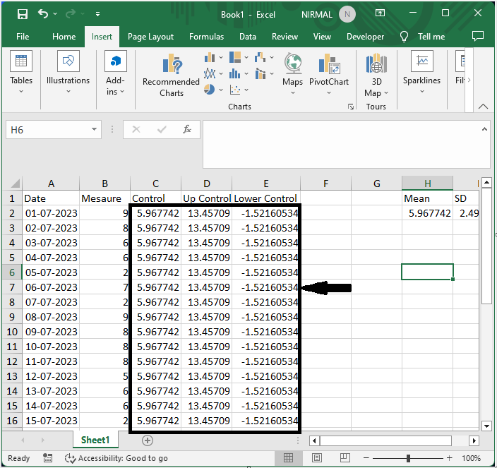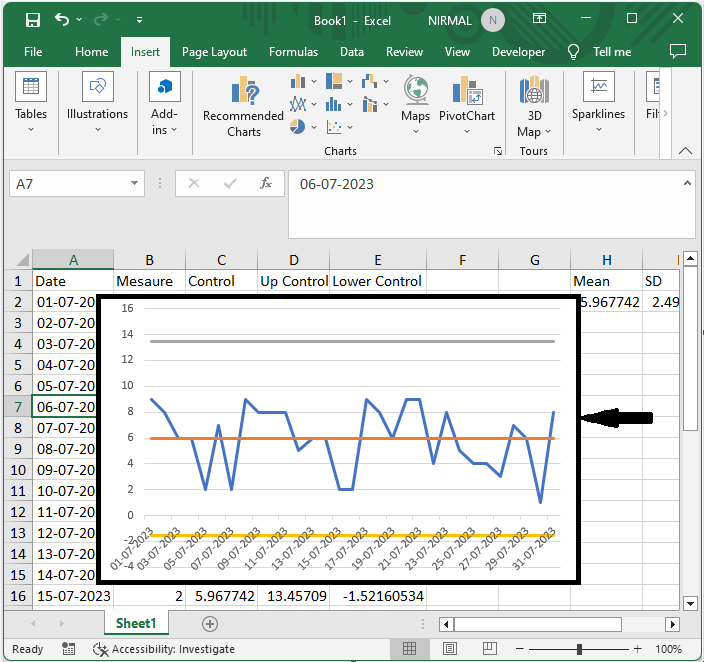 在這裡,我們將首先準備資料,然後建立折線圖,最後將資料新增到圖表中以完成任務。因此,讓我們來看一個簡單的過程,瞭解如何在 Excel 中建立控制圖。
