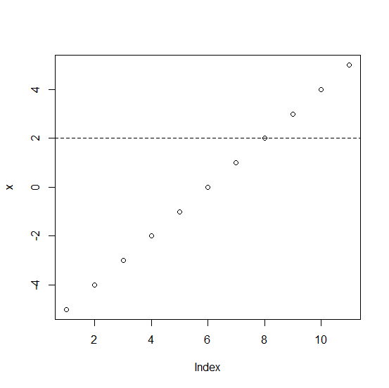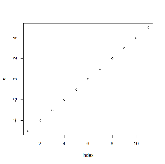 x<−−5:5 x [1] −5 −4 −3 −2 −1 0 1 2 3 4 5 plot(x)