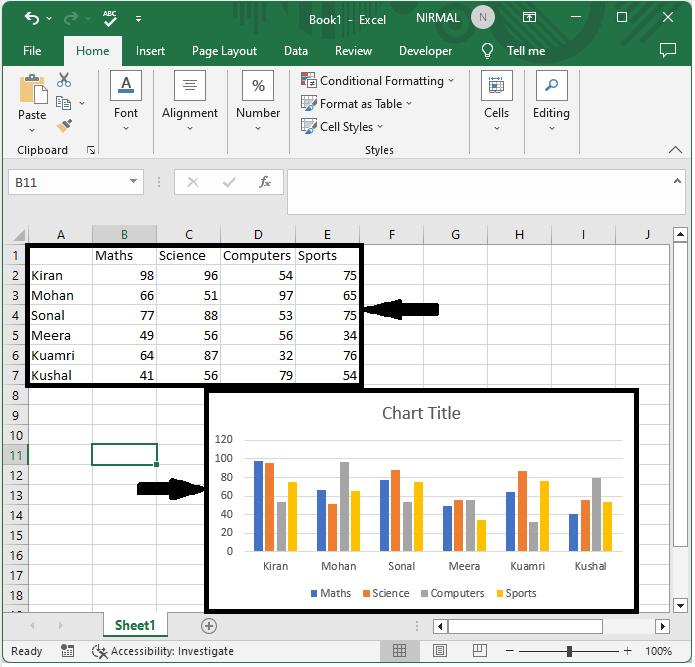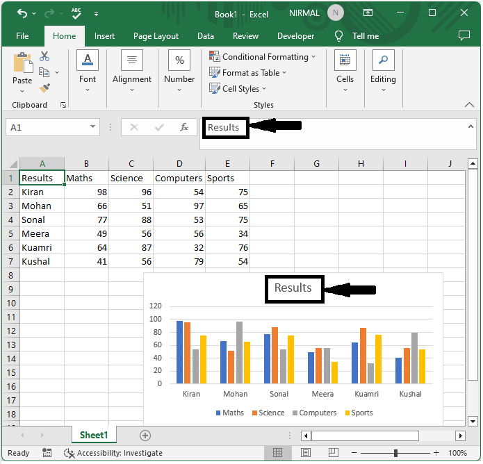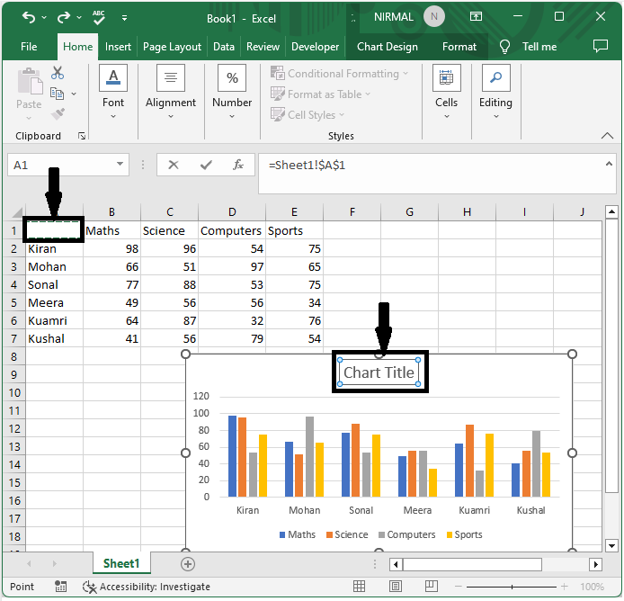 從現在開始,我們可以看到在單元格 A1 中輸入的資料將顯示為圖表標題。