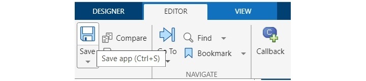 步驟(7)− 單擊App Designer中的“儲存”按鈕以儲存應用程式。