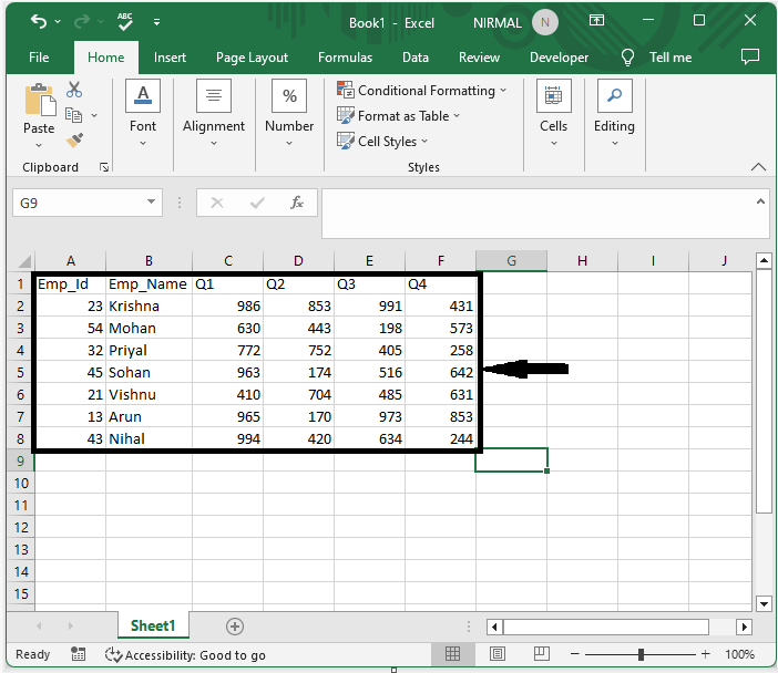 考慮一個 Excel 工作表,其中您以類似於下圖的表格格式儲存資料。