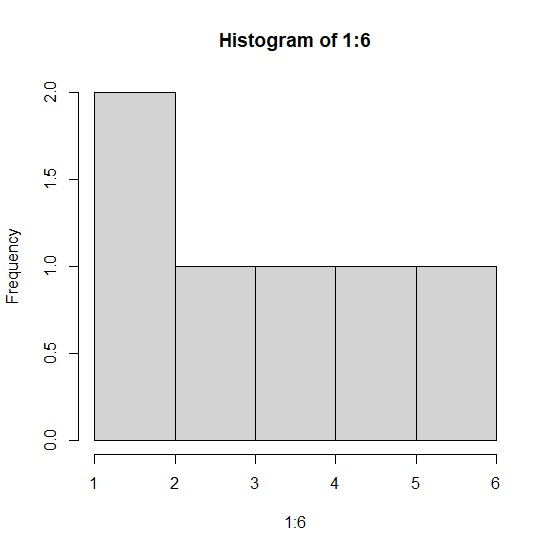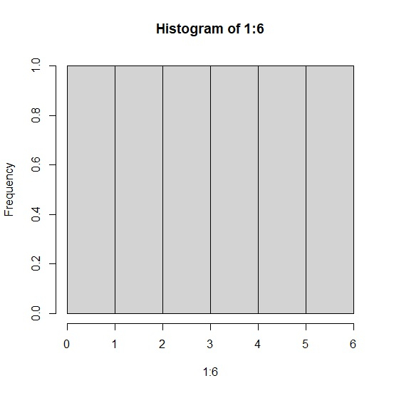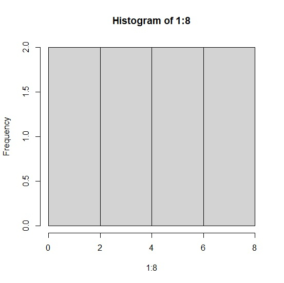 如需為 R 中均勻分佈的資料建立直方圖,我們可以直接使用 hist 函式,但即使頻率相同,條形的大小也可能不同。因此,出於此目的,我們需要定義斷點,如以下示例所示。