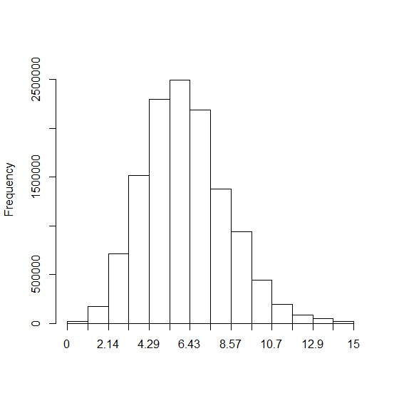 x<-sort(rpois(5000,5)) weight<-seq(1,5000)