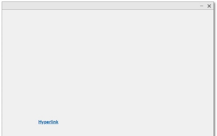 執行此MATLAB程式碼後,它將開啟一個GUI圖形視窗,其中顯示一個名為“Hyperlink”的超連結元件。