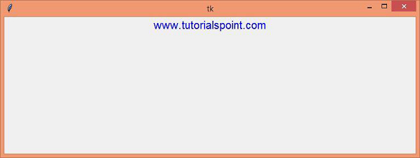 link = Label(win, text="www.tutorialspoint.com",font=('Helveticabold', 15), fg="blue", cursor="hand2")