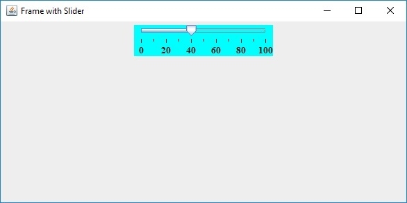 JSlider slider = new JSlider(JSlider.HORIZONTAL, 0, 100, 40); slider.setMinorTickSpacing(10); slider.setMajorTickSpacing(20); slider.setPaintTicks(true); slider.setPaintLabels(true);