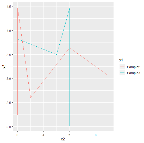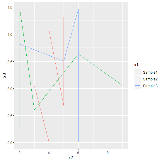 + geom_line(aes(x2,x3,group=x1,colour=x1))輸出