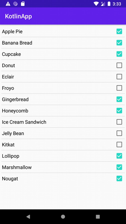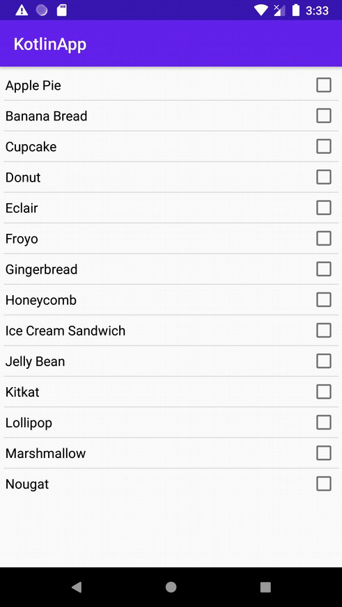 此示例演示瞭如何在 Kotlin 中建立帶有複選框的 listView。