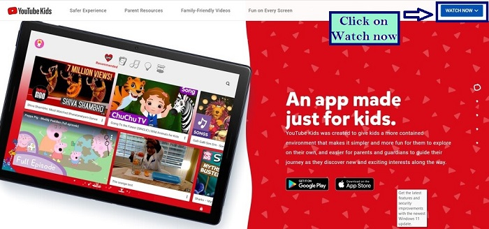 點選上面的連結,在瀏覽器中開啟 YouTube 兒童版。它是免費的。下面的頁面將開啟。點選“立即觀看”。