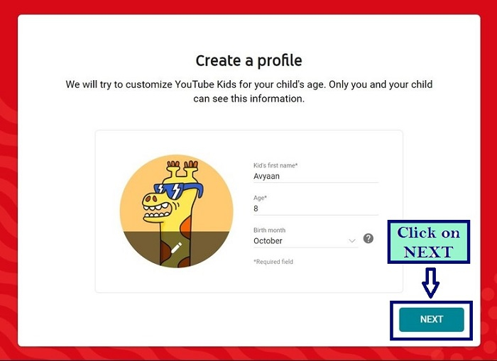 輸入孩子的詳細資訊,然後點選“下一步”。
