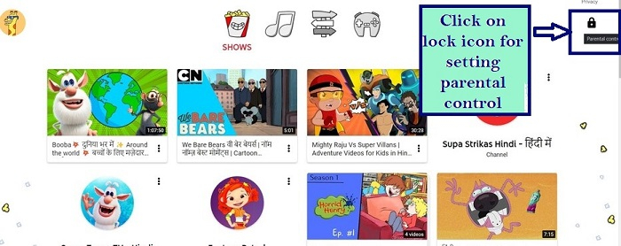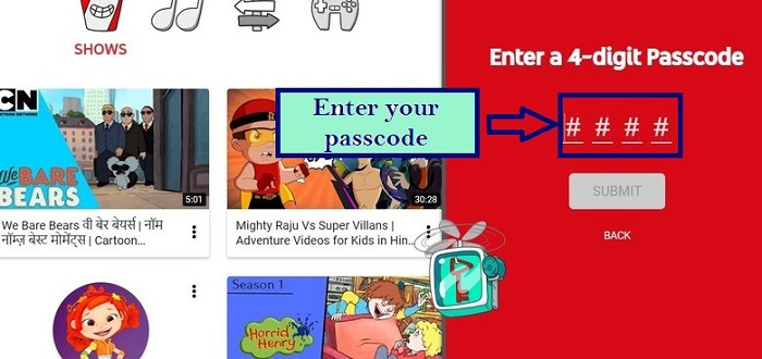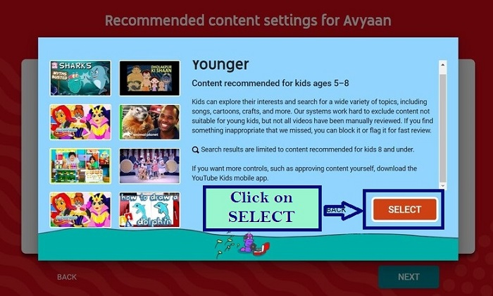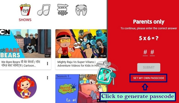 您的孩子將僅限於主螢幕上每個類別下推薦的精選影片。
