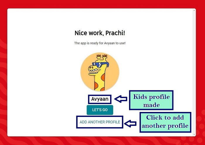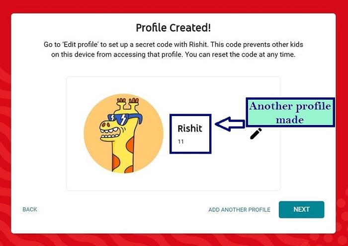 第一個孩子的個人資料已建立。如果您想新增另一個孩子的個人資料,請點選“新增另一個個人資料”。