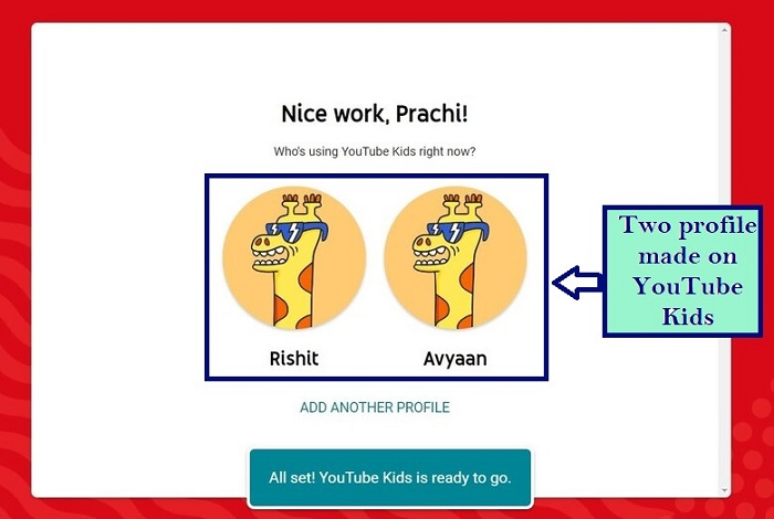 如果您想為家庭中的其他孩子建立更多個人資料,系統會提示您這樣做。輸入第二個孩子的所有資訊。您的第二個個人資料將被建立。之後,YouTube 兒童版就可以使用了。