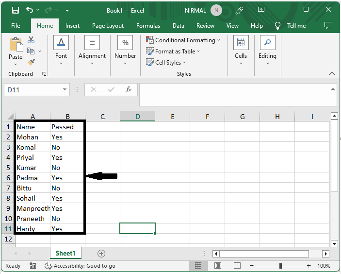 在這裡,我們將首先計算“是”和“否”的數量,然後建立圖表以完成任務。因此,讓我們看看一個簡單的過程,瞭解如何在 Excel 中為“是/否”答案建立餅圖。