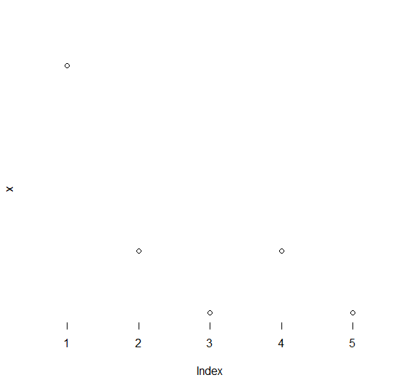 > plot(x,axes=FALSE) > axis(1,c(1:5),col=NA,col.ticks=1)