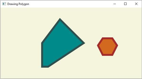 多邊形是使用存在於同一平面中的 n 條線形成的閉合圖形。在 JavaFX 中,多邊形由javafx.scene.shape.Polygon類表示。