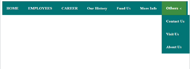 要建立一個響應式導航欄,可以使用媒體查詢。當需要為不同的裝置(如平板電腦、手機、桌上型電腦等)設定樣式時,可以使用媒體查詢。帶有下拉選單的導航欄如下所示。下拉選單包含聯絡我們、訪問我們和關於我們子選單: