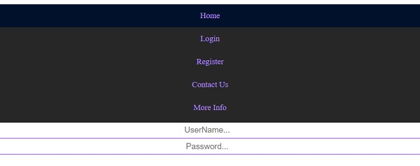 以下是帶有登入表單的響應式導航選單的程式碼 −