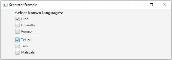 CheckBox checkBox2 = new CheckBox("Gujarathi");