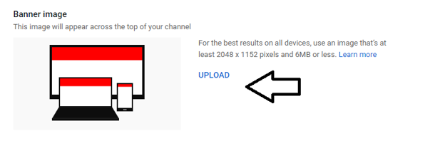 橫幅影像將顯示在您頻道的頂部。使用至少 2048 x 1152 畫素和 6MB 或更小的影像,以便在所有裝置上獲得最佳效果。要新增橫幅影像,請點選藍色按鈕“**上傳**”。