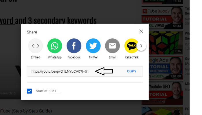 - 開始時間將反映在您的影片 URL 中:例如:https://youtu.be/qwD1LNYuCA0 將更改為 https://youtu.be/qwD1LNYuCA0?t=51
