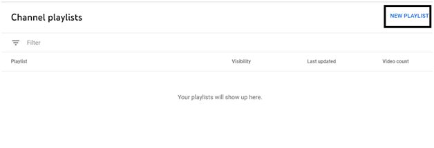 - 步驟 4 − 點選播放列表按鈕後,你將進入頻道播放列表頁面(如下所示)。在頻道播放列表頁面右側的角落,你會找到藍色新建播放列表按鈕。點選新建播放列表按鈕。
