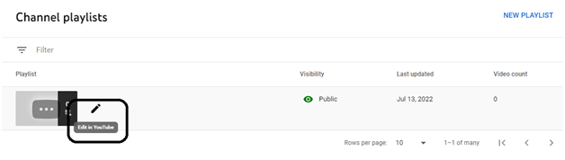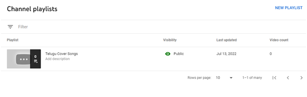 - 步驟 1 − 轉到頻道播放列表頁面,你會看到播放列表列表。但這裡我只建立了一個播放列表。點選在 YouTube 中編輯符號。