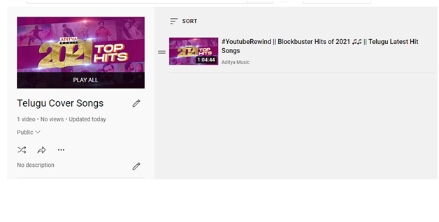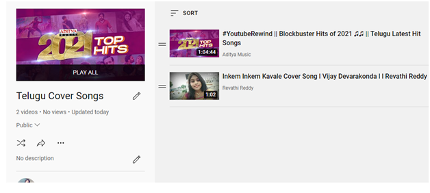 - 步驟 6 − 點選新增影片後,此影片將新增到已建立的播放列表中(如下所示)。