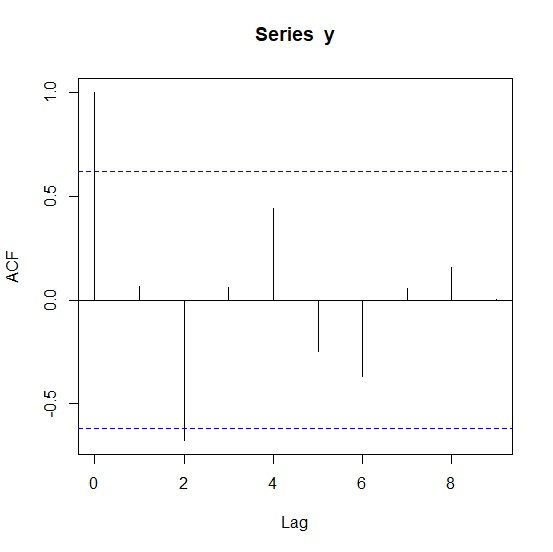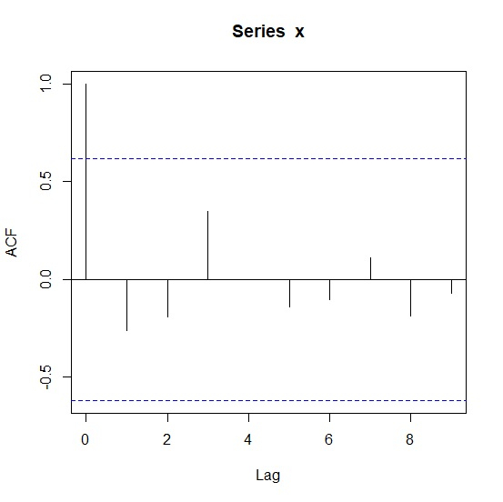 x<-sample(1:9,10,replace=TRUE) acf(x)